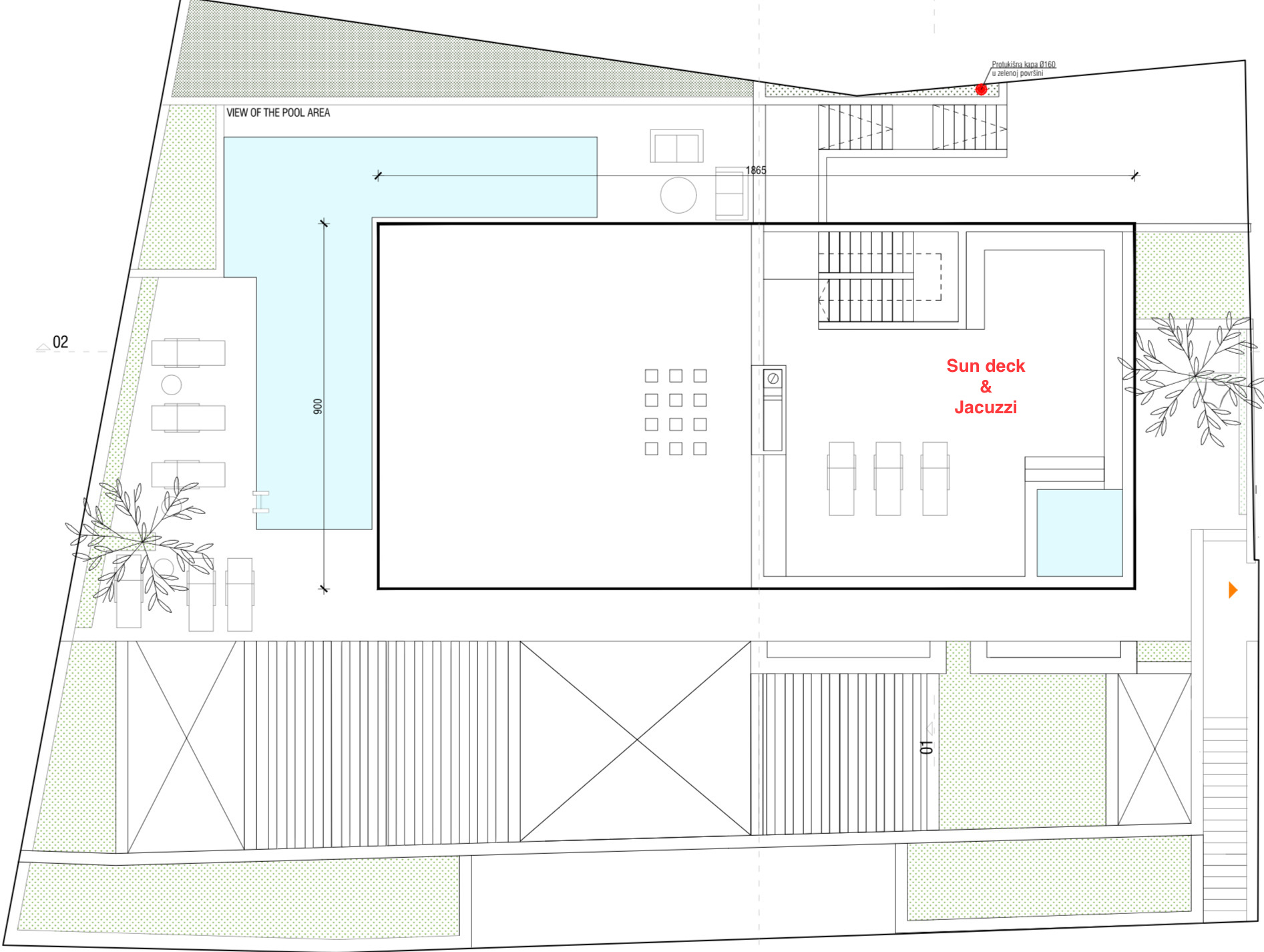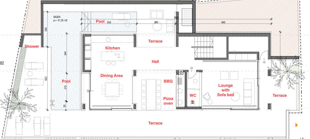 - Direct access to terraces and pool area