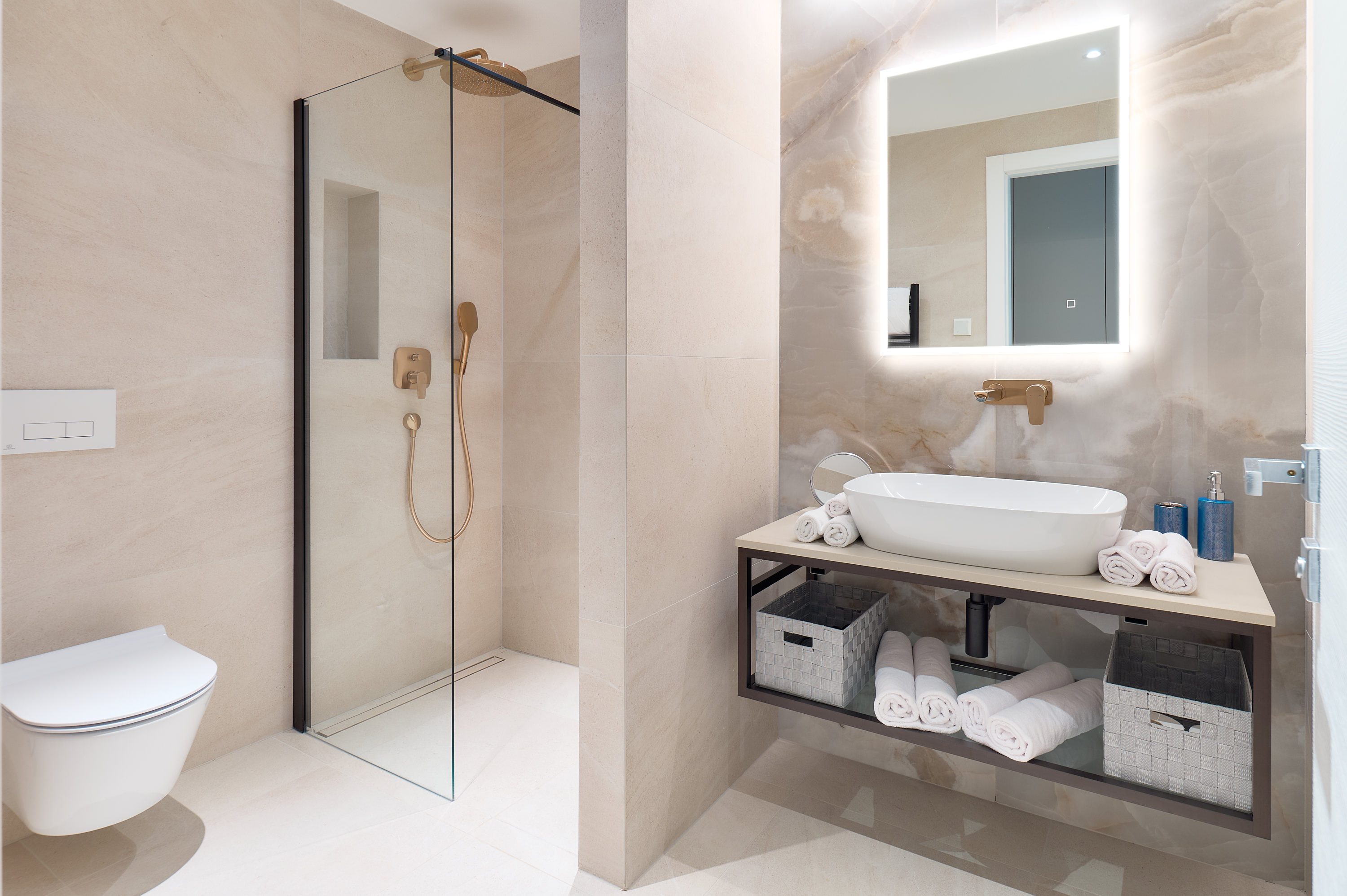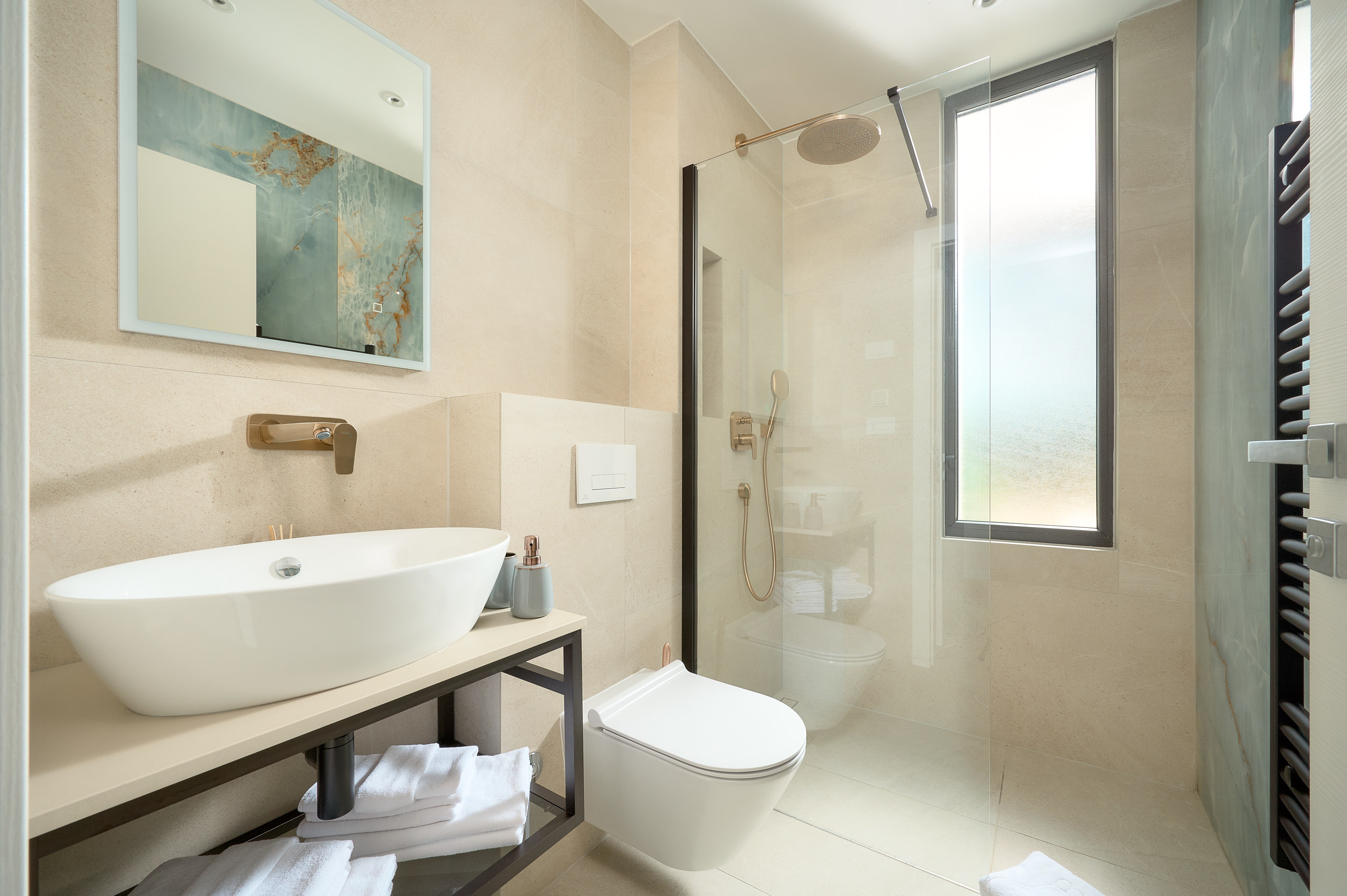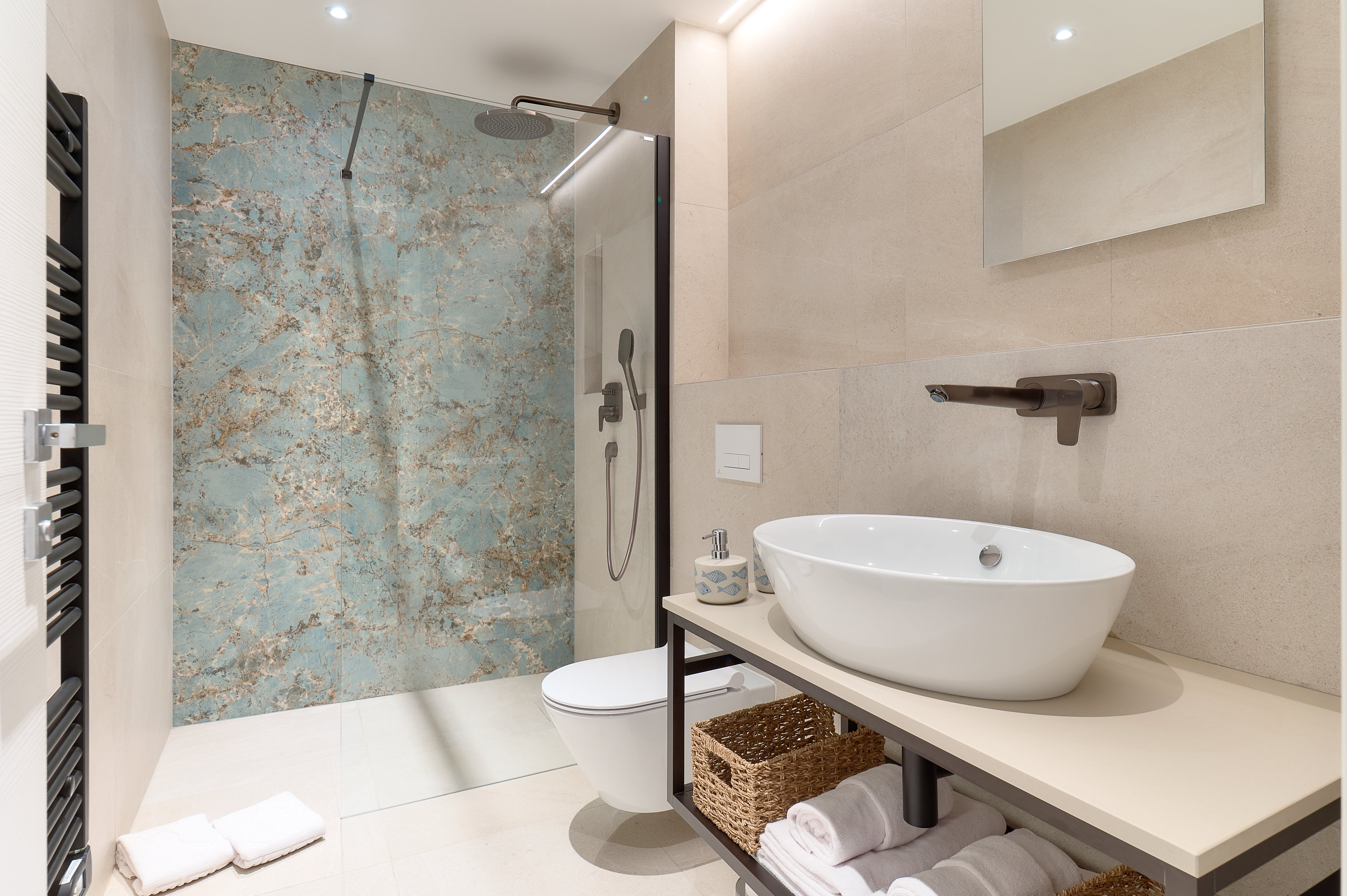 All en-suite bathrooms are finished to a high standard and include walk-in showers, heated towel rails, mirrors, and hairdryers. Soft linens, quality towels, and thoughtful details ensure a comfortable and restful stay throughout the villa.