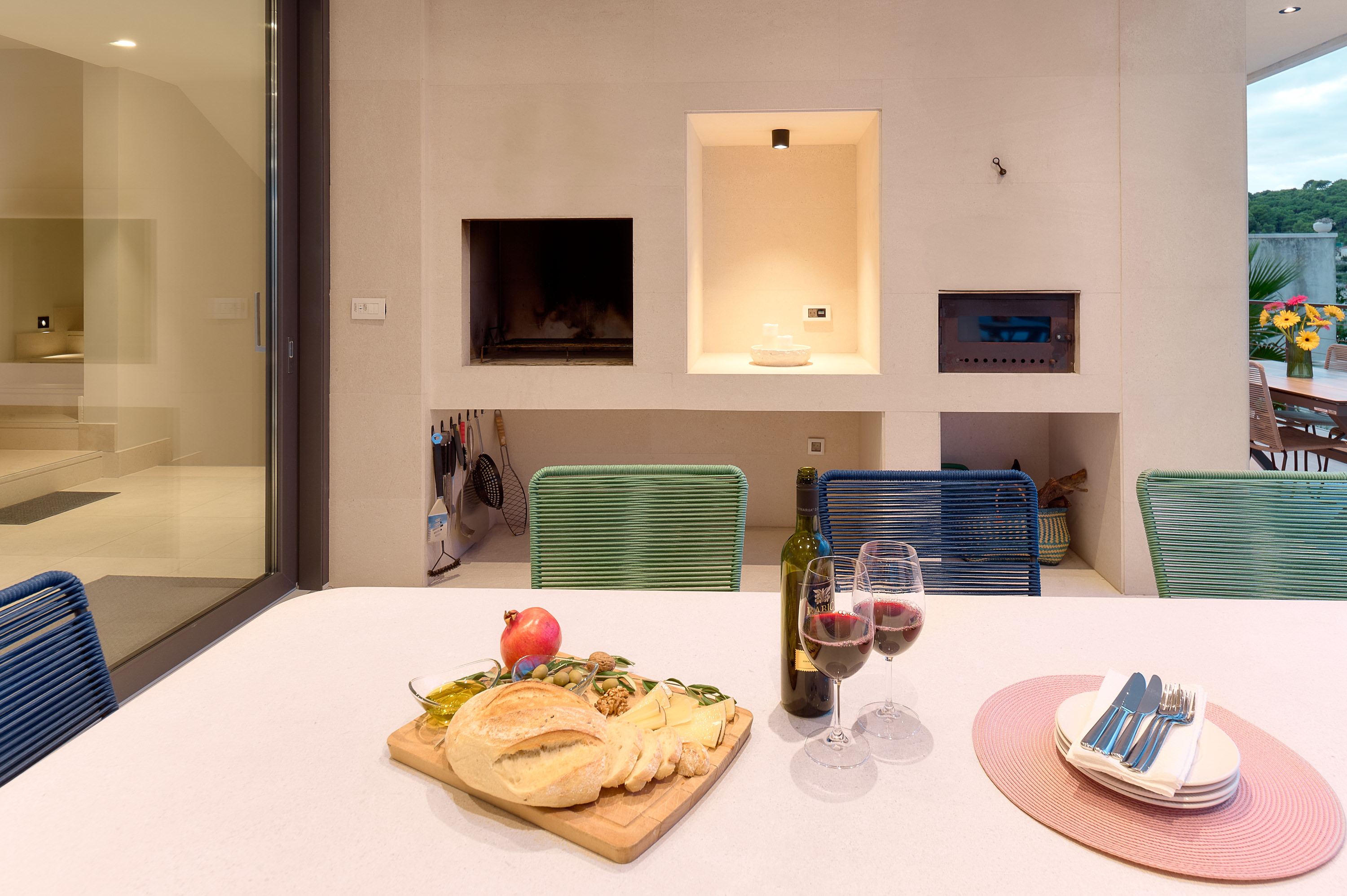 - Outdoor kitchen (BBQ + pizza oven)