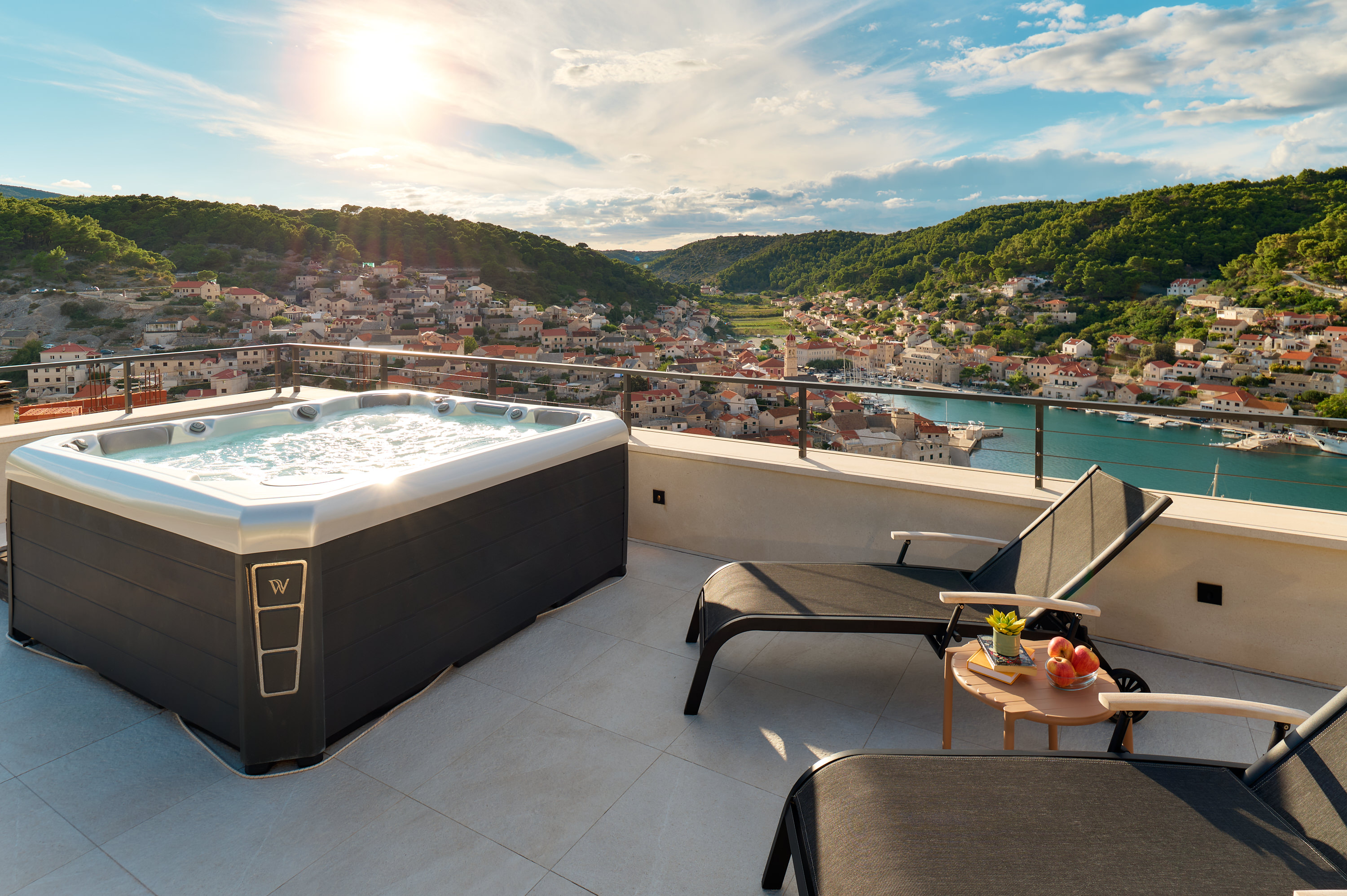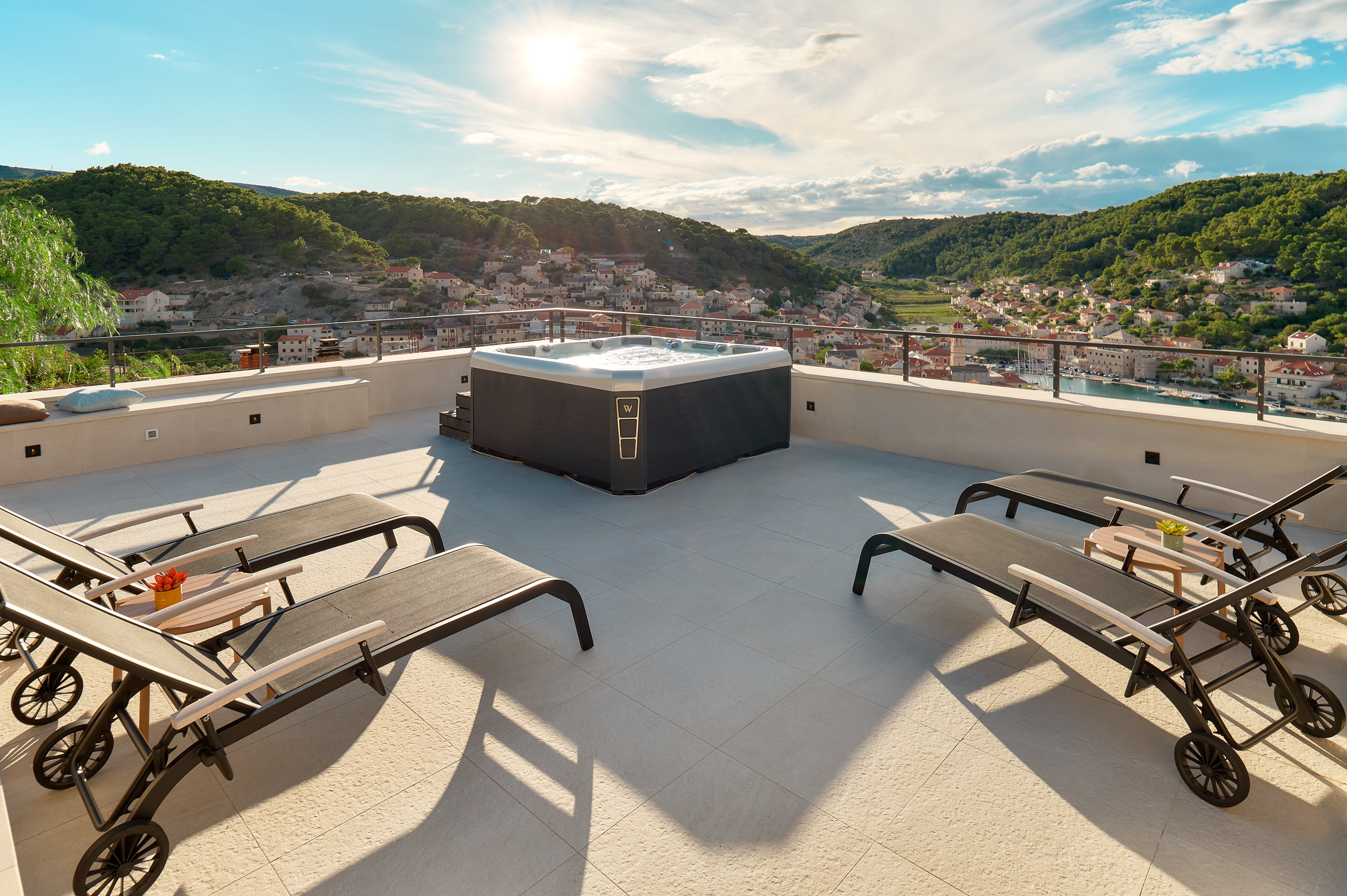 - Rooftop jacuzzi with panoramic sea and village views